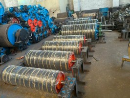 傳動滾筒是帶式輸送機傳遞動力的主要部件,表面有裸露光鋼面,人字形和菱形花紋橡膠覆面,其驅動帶式輸送機的方式有單滾筒、雙滾筒及多滾筒之分,單滾筒多用于功率不太大的輸送機上,如煤礦地面運輸及選煤廠等處,井下帶式輸送機一般均采用雙滾筒,以使輸送機結構緊湊.改向滾筒又叫導向滾筒,是常見的皮帶輸送機關鍵部件,主要用于改變輸送帶的運行方向或壓緊輸送帶使其增大與傳動滾筒的包角,具有結構緊湊、重量輕、占用少、性能可靠、外型美觀、使用安全方便、在粉塵大、潮濕泥濘等惡劣條件下仍能正常工作的特點.